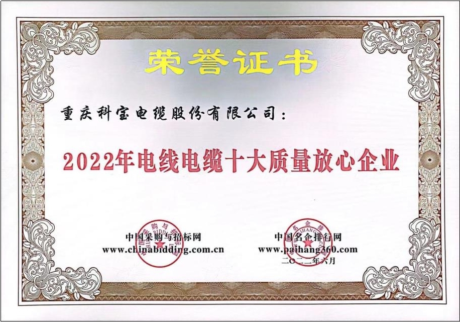 2022年电线电缆十大质量放心企业