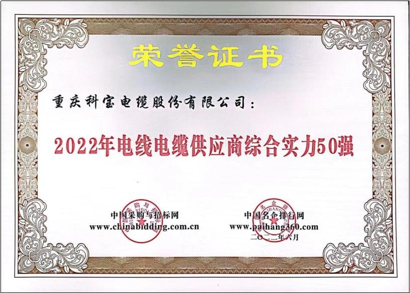 2022年电线电缆供应商综合实力50强